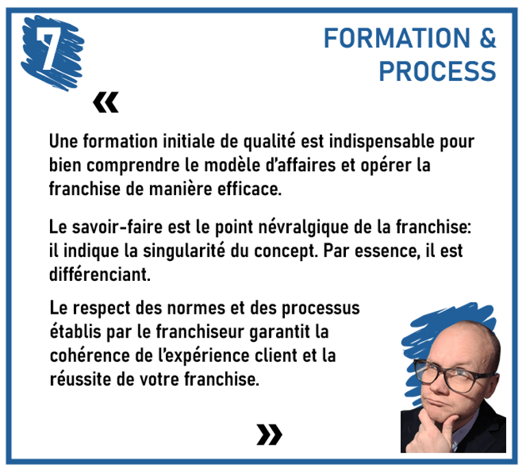 7.S’assurer d’une bonne formation & Respecter les procédures : Une formation initiale de qualité est indispensable pour bien comprendre le modèle d’affaires et opérer la franchise de manière efficace. Le respect des normes et des processus établis par le franchiseur garantit la cohérence de l’expérience client et la réussite de votre franchise.