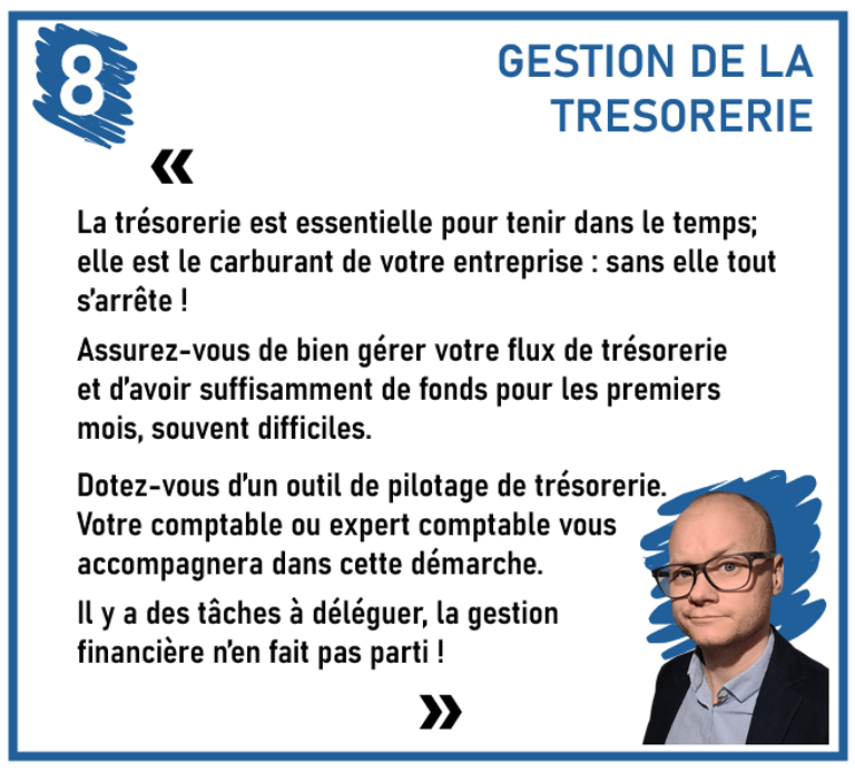 8.Bien gérer son trésorerie : La gestion financière est essentielle. Assurez-vous de bien gérer votre flux de trésorerie et d’avoir suffisamment de fonds pour les premiers mois, souvent difficiles.