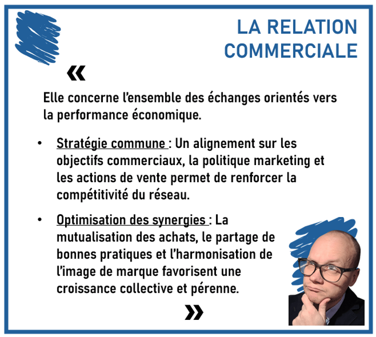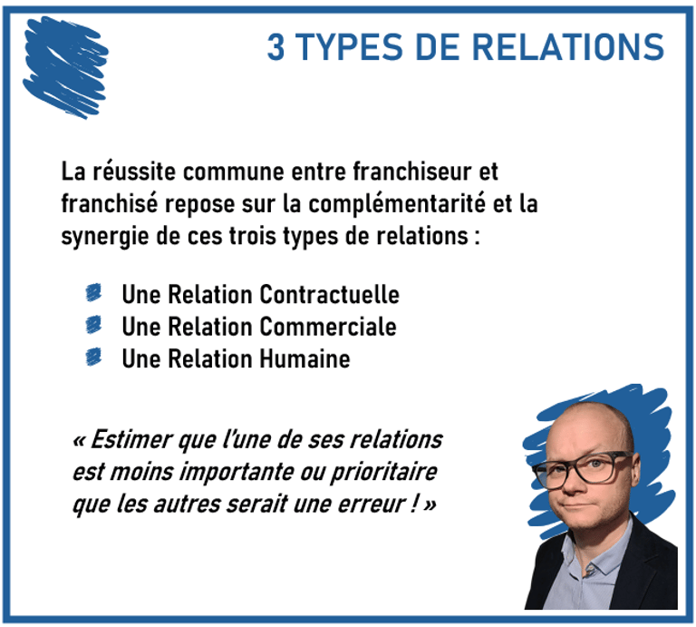 La réussite commune entre franchiseur et franchisé repose sur la complémentarité et la synergie de ces trois types de relations :