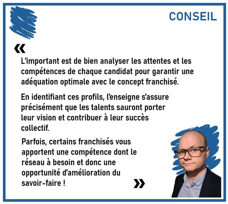 Conseil motivant :L’important est de bien analyser les attentes et les compétences de chaque candidat pour garantir une adéquation optimale avec le concept franchisé. En identifiant ces profils, vous permettez aux enseignes de cibler précisément les talents qui sauront porter leur vision et contribuer à leur succès collectif.